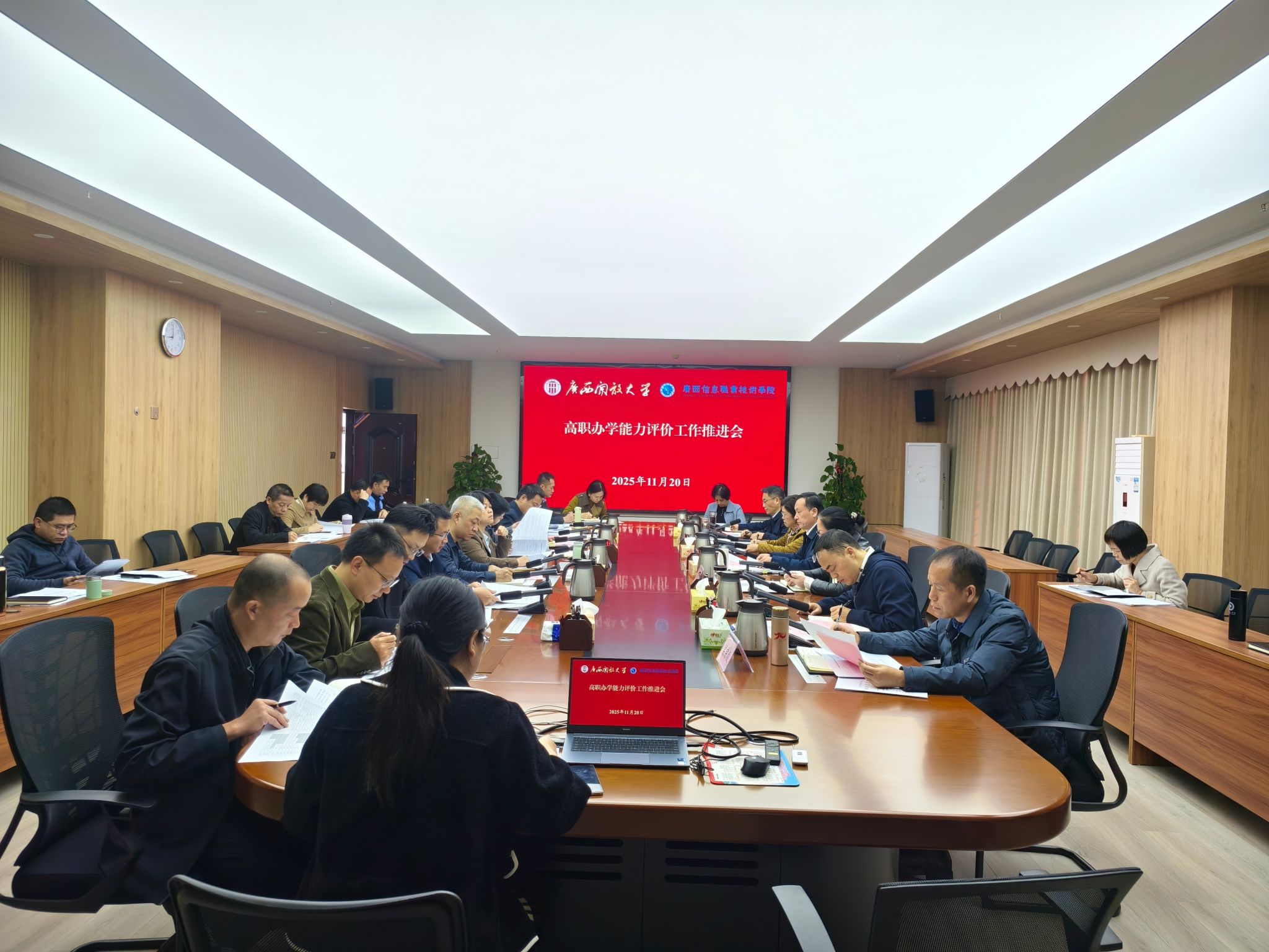 发展规划中心 黄丽婷 报道 为深入贯彻落实自治区教育厅印发的《广西壮族自治区高等职业学校办学能力评价实施方案(2025-2030年)》精神,对照新指标体系开展全面摸底、部署迎评促建工作,11月20日上午,学校召开高职办学能力评价工作推进会。广西开放大学全体校领导、广西信息职业技术学院院级副职领导以及校属各单位主要负责人参加了此次会议,会议由学校副校长辛立章主持。