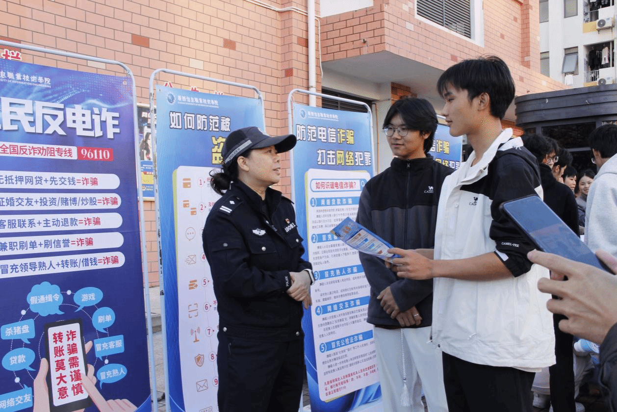 活动现场,派出所工作人员凭借丰富办案经验,带来了一场反诈知识盛宴。他们深入剖析刷单返利、虚假兼职等大学生高发诈骗类型,详解诈骗分子作案手法、心理战术与防范要点。
