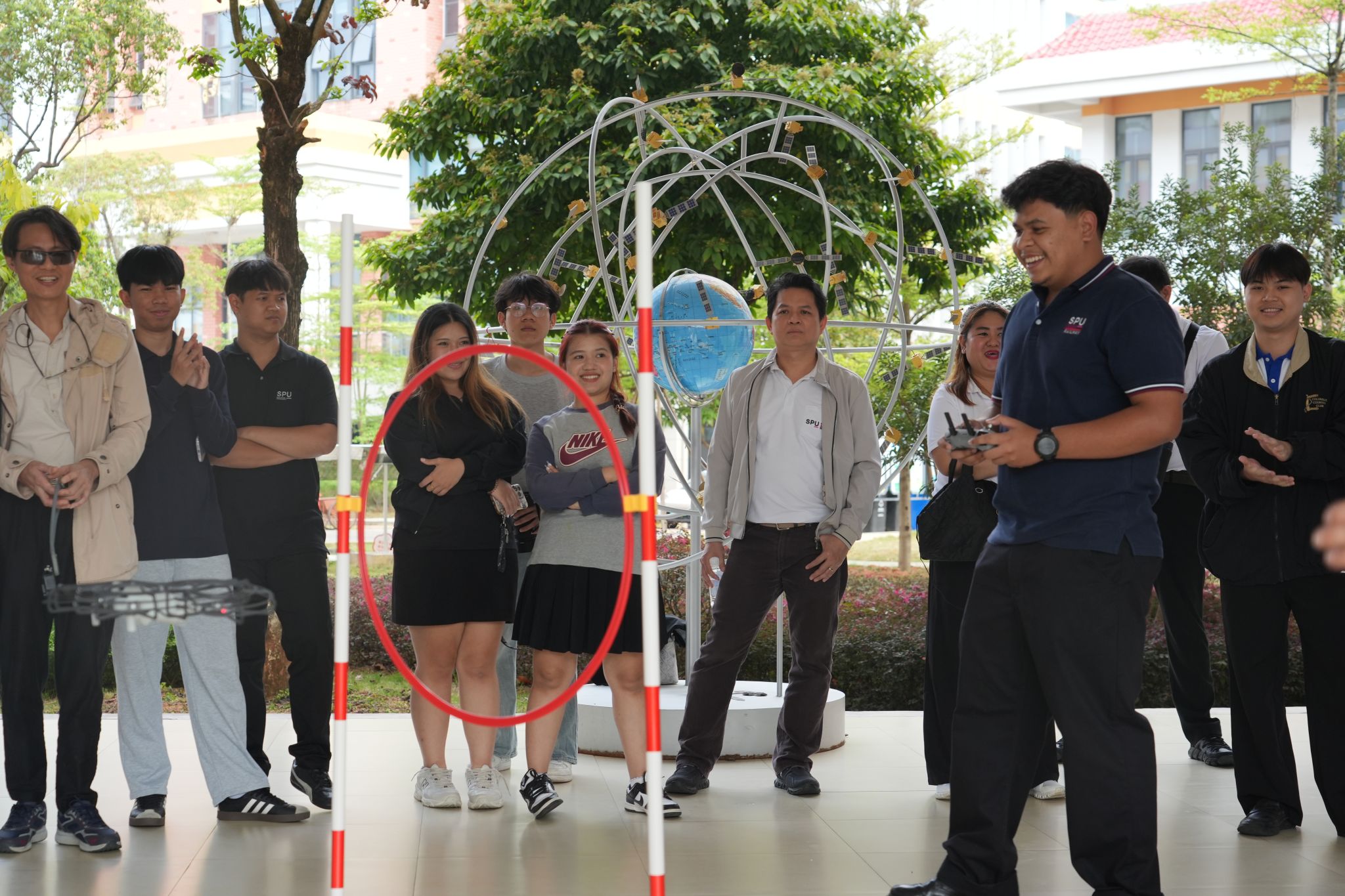 研学期间,我校为泰方师生精心组织了集成电路测试技术培训与无人机综合实训等特色课程。在北斗与通信学院教师与企业导师的指导下,泰国学生亲手操作设备,感受芯片测试在产业链中的“守门人”作用;在墨子楼前,无人机编队飞行演示与操控体验赢得阵阵赞叹。人工智能、北斗应用等前沿技术课程,让泰方师生近距离领略中国职教的创新实力与发展活力。