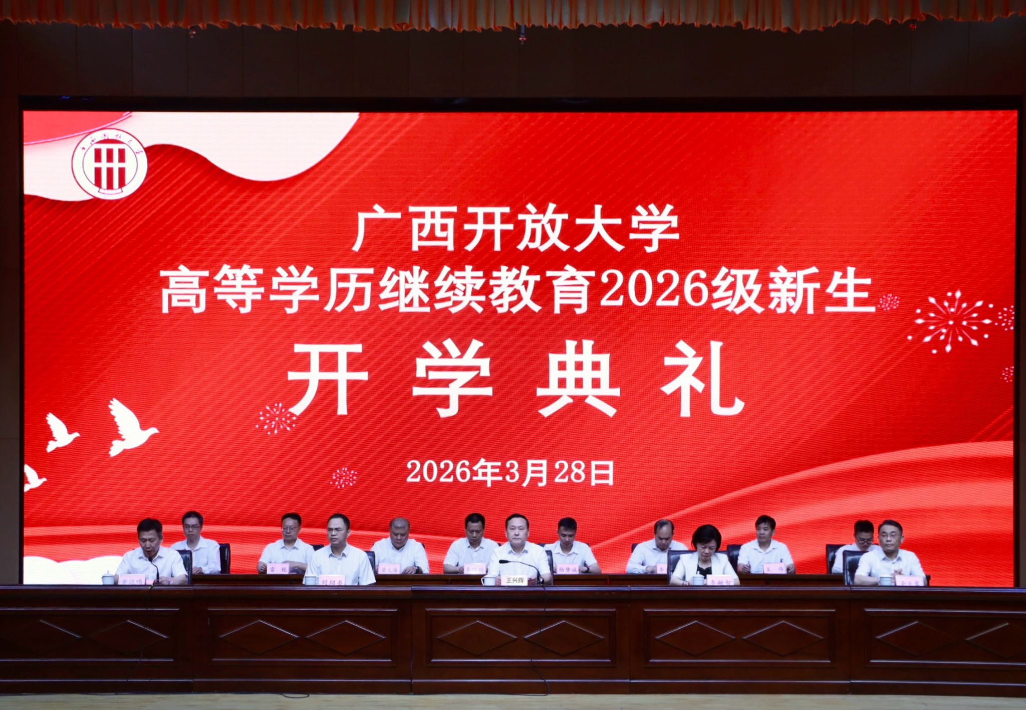 继续教育学院 韦小婵 报道 3月28日下午,广西开放大学高等学历继续教育2026级新生开学典礼在东宝校区一楼报告厅举行。学校党委副书记、校长王兴辉出席典礼并讲话,副校长黄远鸣主持典礼。典礼采用主会场与分会场,线上与线下相结合的方式进行,2026级全体新生齐聚现场与云端,共同开启求学新征程。