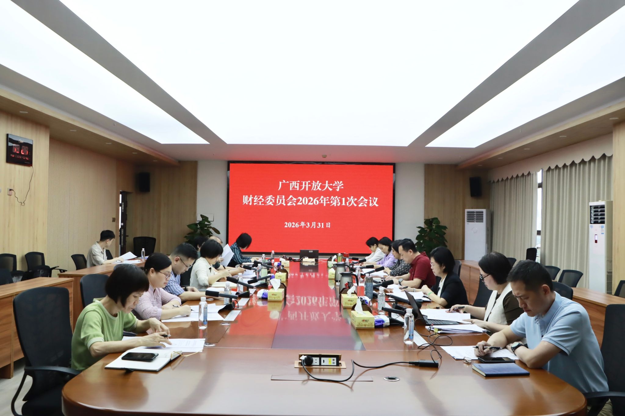 财务处 韦凤桃 报道 3月31日下午,学校财经委员会2026年第一次全体会议在东宝校区1101会议室召开。会议由校长、校财经委员会主任王兴辉主持,副校长李敏智,财经委员会全体委员参加。