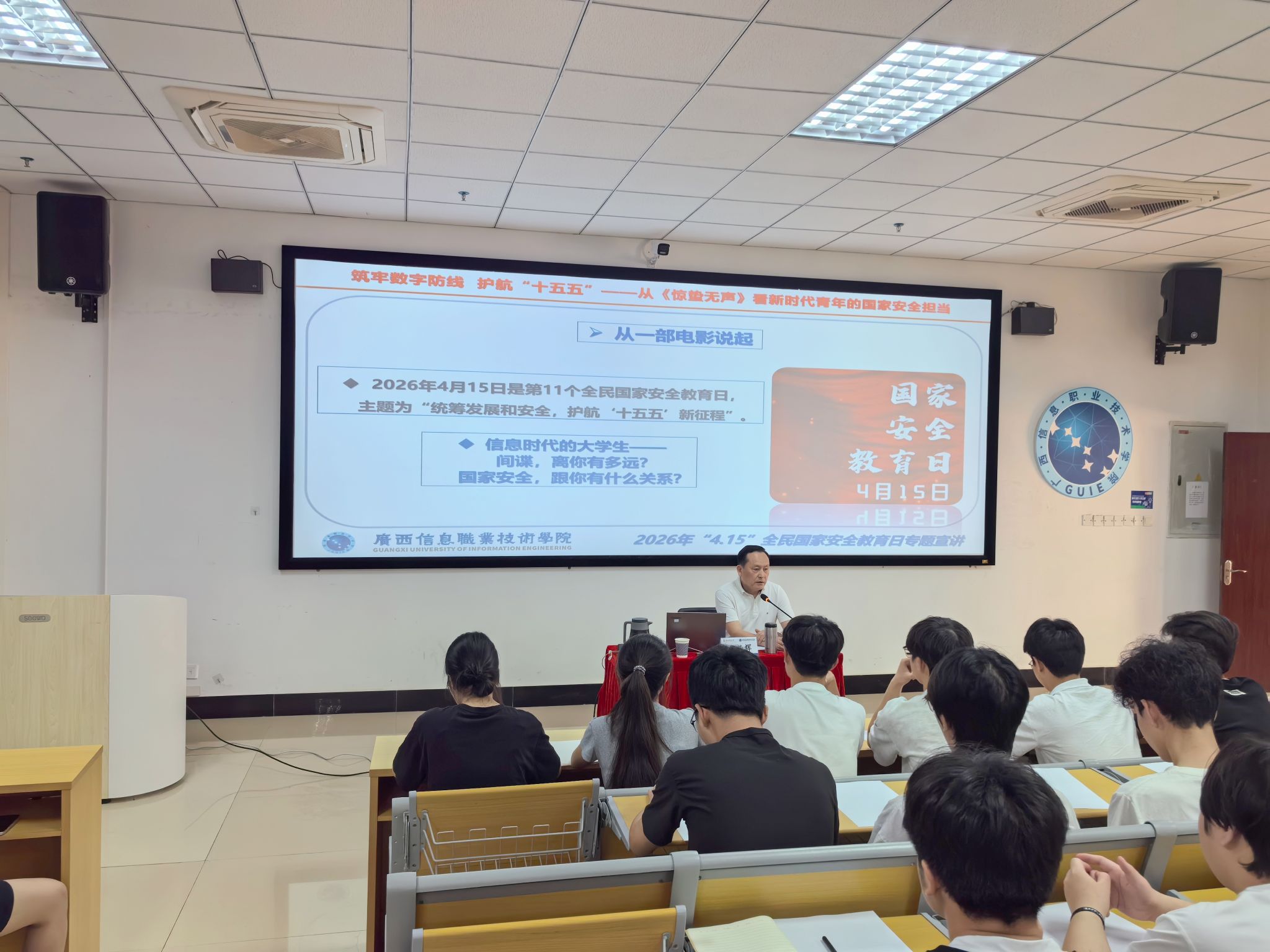 围绕新时代青年的使命与担当,王兴辉勉励青年学生,要厚植家国情怀,增强忧患意识,牢固树立总体国家安全观,做到安而不忘危、存而不忘亡、治而不忘乱;要练就过硬本领,筑牢专业技能防线,在未来的技术岗位上守住信息安全的每一道关口,以扎实技能护航“十五五”新征程;要坚持底线思维,明辨是非、抵制诱惑,在纷繁复杂的网络环境中保持清醒头脑,做维护国家安全的坚定力量。