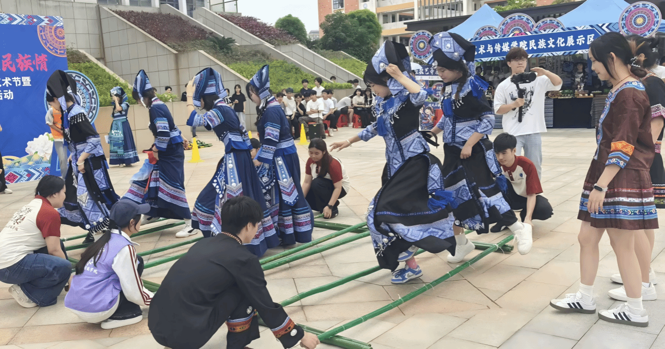 今年三月三校园文化艺术节活动紧扣铸牢中华民族共同体意识主线,将传统民族节日文化与铸牢中华民族共同体意识教育有机融合,活动设置民族文化展演、非遗文化体验、民族美食文化品鉴及民族传统体育竞技等展区,依托多姿多彩的文化体验活动强化同学们的民族文化认同。