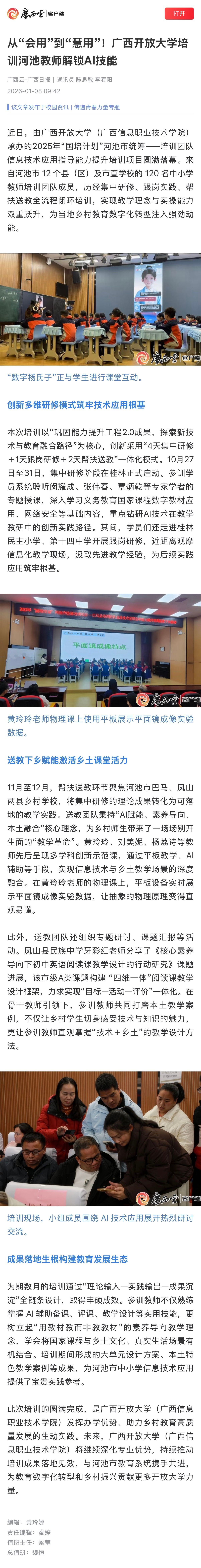 广西云-广西日报:从“会用”到“慧用”!广西开放大学培训河池教师解锁AI技能