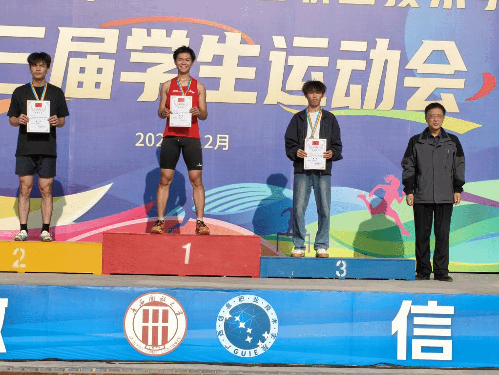 男子200米、800米均获冠军,跳高项目更是包揽前三名,其中24级学生韦奇东打破校运会记录。25级学生李睿博表现突出,一人独揽3金1银。女子项目中,25级学生蒋雅婷在200米夺冠,并与队友协力斩获接力金牌;女子铅球、跳高双双摘金,24级学生黄馨丽在跳高中刷新校运会记录。