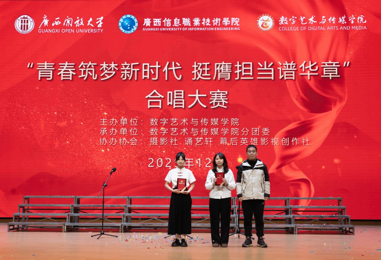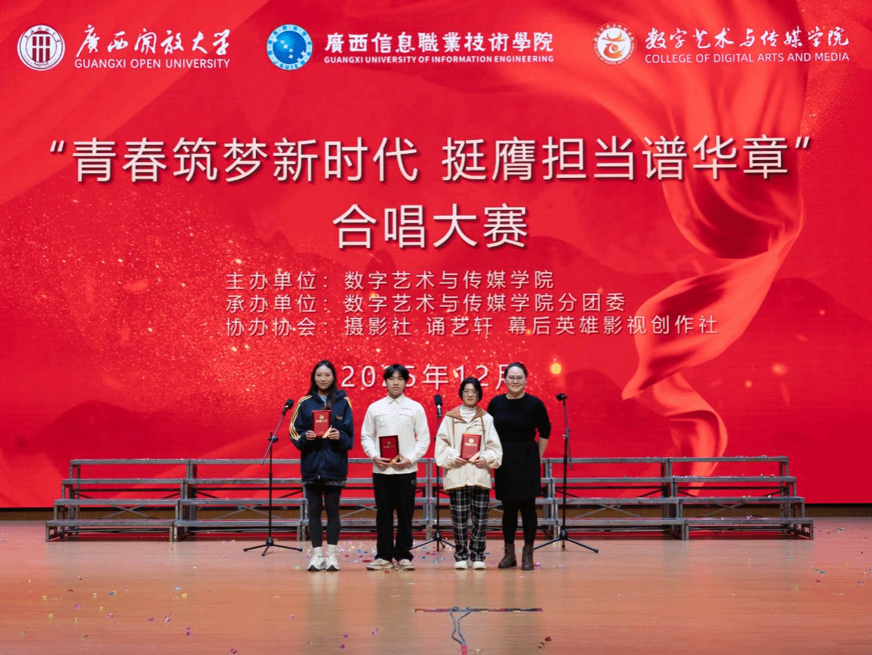 经过评委团的专业评审,2025级影视多媒体技术1班演唱的《如愿》,凭借饱含深情的歌声与富有感染力的舞台表现斩获一等奖;2024级影视多媒体技术2班、2024级影视多媒体技术3班以默契的配合与动人的演唱荣获二等奖;2024级室内艺术设计3班、2025级影视多媒体技术2班、2024级数字媒体艺术设计3班摘得三等奖。