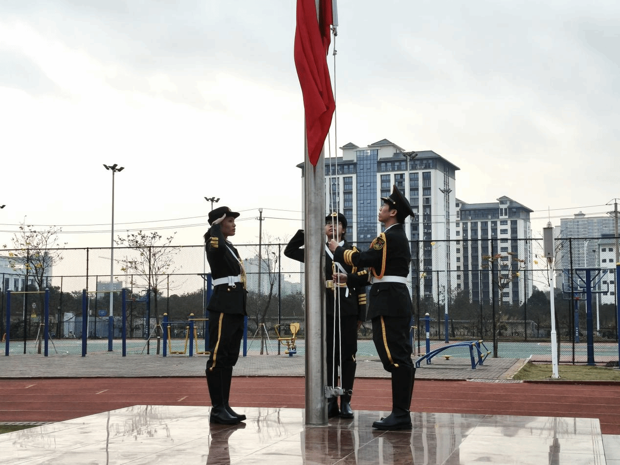 学院升旗仪式现场