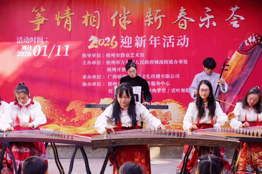 梧州开放大学 覃薇 报道 1月11日,梧州开放大学古筝班汇报演出与书法班迎春送福活动,在骑楼城珠玑广场温情上演。岭南骑楼风情与传统艺术碰撞,为市民游客送上一场兼具雅韵与年味的文化盛宴。